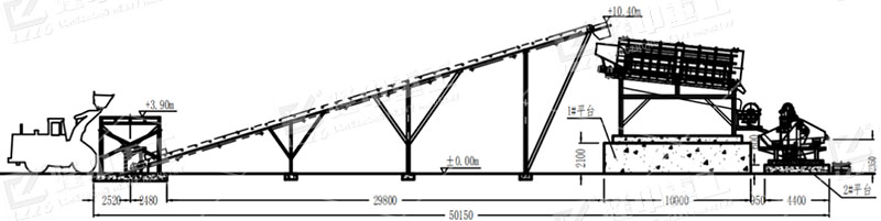 該生產(chǎn)線主要由給料機(jī)、滾筒篩 、濕式磁選機(jī)、脫水型細(xì)砂回收機(jī)等設(shè)備等組成。